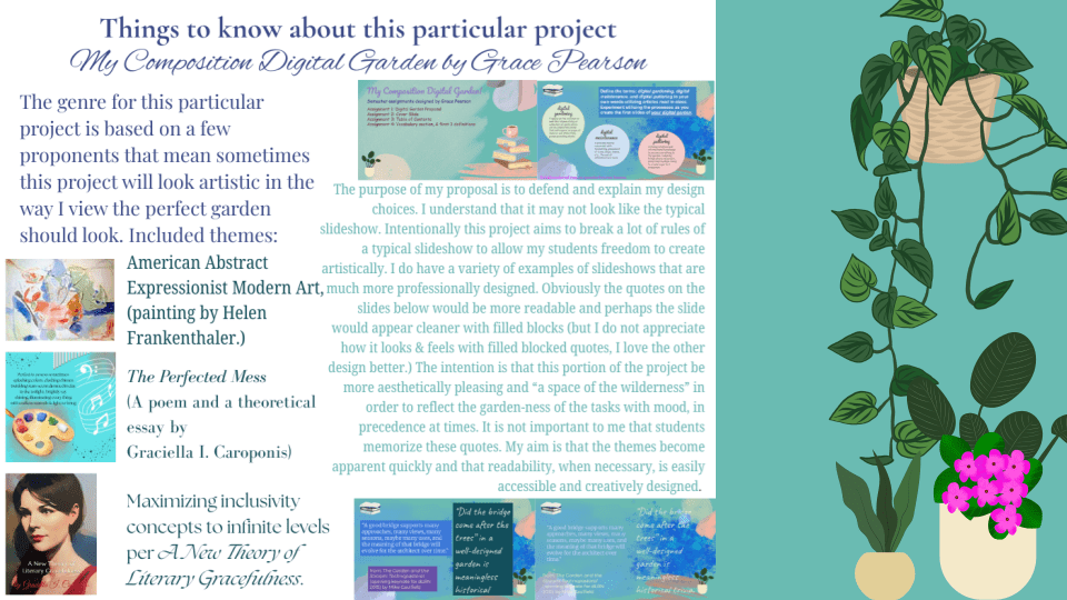 At the very beginning of Composition 1 we are creating a digital “garden” journal. For the rest of the lessons you will have to join my course (or acquire my book about teaching composition.) See you in class!